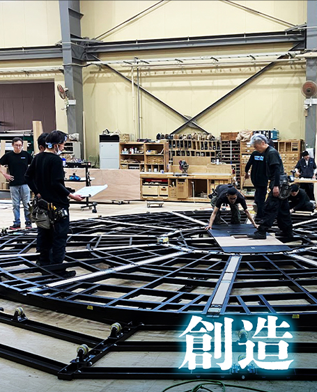 越谷工場を拠点に「舞台裏のアーティスト」たちが様々なセットを製作しています。