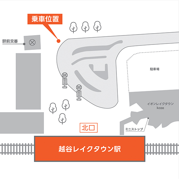 越谷レイクタウン駅から会社送迎バスが運行いたします。